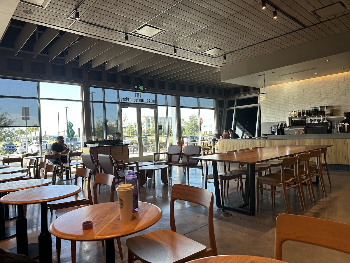 Stepping into this Starbucks on South John Young Parkway feels like entering an inviting, breezy pause from the typical rush. The spacious layout and thoughtfully arranged seating welcome you to settle in—whether you’re here for a quiet moment alone or a leisurely catch-up with friends. Natural light filters softly through the windows, while a gentle hum of music and low conversations create a calm, relaxed current beneath your visit.